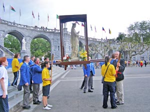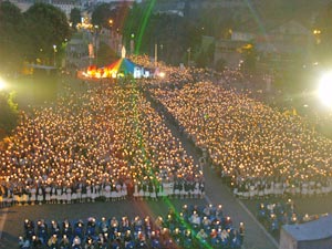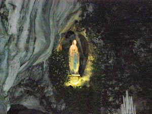 Aux flambeaux Tradicionalna večernja procesija sa svijećama (izgovor: o flambo) na kojoj sudjeluju gotovo svi hodočasnici koji dolaze u Lurd. Upaljene svijeće hodočasnike upućuju na Božju milost koju su primili po sakramentu krštenja. Bezgrešno Začeće Kod šesnaestoga čudesnog susreta Blažene Djevice i Bernardice, Marija se predstavlja riječima: Ja sam Bezgrešno Začeće. Podatak od presudne važnosti za priznavanje autentičnosti Bernardičinih viđenja. Cachot Nekoć zatvorska ćelija lurdskog zatvora (izgovor: kašo) unutar koje je, nepunih godinu dana, besplatno živjela siromašna Bernardica Soubirous (izgovor: Subiru) sa svojom obitelji, u vrijeme njezinih čudesnih susreta sa Blaženom Djevicom Marijom. Četvrtak U četvrtak, 11. veljače 1858., dogodio se prvi čudesni susret između Blažene Djevice Marije i malene djevojčice Bernardice Soubirous unutar Masabjelske špilje. Dogma Papa Pio IX., bulom "Ineffabilis Deus", proglasio je 1854. godine dogmu o Marijinom Bezgrešnom začeću. Marija se, četiri godine nakon toga, Bernardici predstavila riječima: Ja sam Bezgrešno Začeće. Émil Zola Francuski književnik i nositelj višeg reda časti masonske Velike lože. Vlastitom je izjavom (18. travnja 1896.) priznao kako je godinama svjesno iskrivljavao istinu o Lurdu i svetačkome životu Bernardice Soubirous. Pokajao se, napustio slobodno zidarstvo te, od pape Lava XIII. i svih onih koje je zaveo, zatražio oproštenje. Film "Lurd" U povodu 150. obljetnice Gospina ukazanja u Lurdu, Orlando Film je objavio na dva DVD-a talijanski dvodijelni televizijski film Lurd. Gava Rijeka koja protječe kroz Lurd neposredno u blizini Masabjelske pećine. Hodočašća Niti jedno svetište još nije privlačilo toliko puno hodočasnika. Pretpostavlja se kako je do sada Svetište posjetilo oko 200 milijuna hodočasnika iz cijeloga svijeta. Također je velik i broj ostalih posjetitelja, koji u Svetište dolaze iz nekih drugih razloga. Izvor vode Kod devetoga čudesnog susreta Blažene Djevice i Bernardice, Marija upućuje malenu Bernardicu prema kamenu unutar Masabjelske špilje ispod kojega je potekao izvor ljekovite vode. Jubilejski hod Hodočasnički put za dobivanje potpunog oprosta prigodom jubilarne 150. obljetnice Gospinih ukazanja u Lurdu. Obuhvaća četiri mjesta: Župnu crkvu gdje je Bernardica krštena, Cachot, pećinu Massabielle te kapelu u bolnici gdje je Bernardica primila prvu pričest. Kip Naše Gospe od Lurda Kip Blažene Djevice Marije koji je napravljen prema iskazima Bernardice Soubirous i postavljen u Masabjelsku špilju 1864. godine. Lurd Maleni pitomi gradić na sjeverozapadu Francuske u podnožju Pirineja. Rodno mjesto sv. Bernardice Soubirous i jedno od najpoznatijih marijanskih svetišta na svijetu. Masabjelska špilja Mjesto nadomak Lurda na kojemu su se događali čudesni susreti Blažene Djevice Marije i Bernardice Soubirous. Nevers Grad u središtu Francuske gdje je sv. Bernardica provela posljednje dane svojega kratkoga redovničkog života. Svetičino tijelo, potpuno neraspadnuto, počiva u staklenom lijesu unutar kapelice samostana St. Gildars. Ozdravljenja Lurd je, uz brojna ukazanja Blažene Djevice Marije, poznat i kao mjesto brojnih hodočasnika koji svakodnevno svjedoče o vlastitim čudesnim ozdravljenjima od različitih fizičkih i psihičkih bolesti. Potpuni oprost U jubilarnoj 150. obljetnici Gospinih ukazanja u Lurdu, papa Benedikt XVI. proglasio je potpuni oprost. Oprost se odnosi na hodočasnike koji će posjetiti sva mjesta označena kao "Jubilejski hod" u razdoblju od 8. prosinca 2007. do 8. prosinca 2008. godine. Soubirous Obiteljsko prezime sv. Bernardice. Pravo ime joj je Marija Bernardica Soubirous. Rođena je 7. siječnja 1844. u Lurdu, kao najstarija od devetero djece Françoisa Soubirous i Louise Castérot. Umrla je u Neversu 16. travnja 1879. Crkva ju je proglasila blaženom 1925., a na blagdan Bezgrješnog Začeća 1933. i svetom. Ukazanja Blažena Djevica Marija ukazivala se sv. Bernardici ukupno 18 puta. Prvi put u četvrtak 11. veljače 1858. Nakon toga uslijedilo je još 17 ukazanja. Posljednje je bilo 16. srpnja, na blagdan Gospe Karmelske. Volonteri U Lurd hodočaste i brojni volonteri iz cijeloga svijeta, muškarci i žene gotovo svih životnih dobi i društvenih položaja kako bi, na različite načine, pomagali ostalim hodočasnicima. Znak križa Kad se Blažena Djevica Marija prvi put ukazala malenoj Bernardici u pećini Massabielle, prvo što je Marija učinila bio je znak križa, u tišini, bez i jedne riječi. Žena Bernardica je, nakon prvoga čudesnog susreta sa Blaženom Djevicom, Mariju opisala kao mladu ženu u bijeloj haljini, sa plavim pojasom oko struka, sa žutom krunicom bijelih zrnaca u rukama i sa žutim ružama na stopalima. |