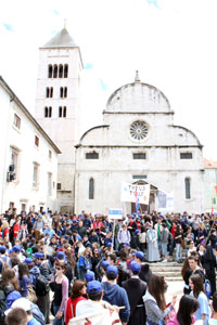 Pod povećalom Kako je Zadar postao najradosniji grad na svijetu Susret hrvatske katoličke mladeži - Zadar 2010. ZADAR - Još uvijek sa svježim sjećanjima na Susret hr-vatske katoličke mladeži u Varaždinu prije dvije godine, sjatili su se mladi na novi, šesti po redu, održan ovog puta u Zadru 8. i 9. svibnja. Tridesetak tisuća mladih duša i njihovih animatora doče-kale su bujice i potoci na cestama. Kao da je sam Duh Sveti htio dati do znanja da je poslao "rijeke žive vode" da ih poškrope. Tog se vikenda Zadar nakratko podsjetio na ljetnu sezonu i turistima ispunjene ulice i trgove. Sve je vrvjelo od mladih i njihovih kišobrana (onih koji su ih imali). Ipak, nikakve vremenske neprilike nisu mogle umanjiti njihove osmijehe, jer je "radost bila potpuna". To se geslo Susreta, primijetili smo, u potpunosti živjelo, i Zadar je te subote bio najradosniji grad na svijetu. Oko dva sata poslije podne, krenula je ispred crkve sv. Stošije raspjevana procesija prema Višnjiku, gdje je na stadionu održana misa. Tolika su mlada lica uspjela dragim zadarskim "nonama" vratiti duh mladosti, te su ih ove veselo pozdravljale sa svojih prozora. Prije misnog slavlja, sudionicima se obratio šibenski bis-kup Ante Ivas, predsjednik vijeća HBK za mlade. Kratko i jasno, istaknuo je: "Imam samo jednu poruku, dragi mladi: volimo vas. Vi ste naša utjeha. I imam samo jednu želju: pomozite nam da vas volimo još više te da naša čaša bude prepuna Kristova vina, vina ljubavi!" Misu je predvodio zadarski nadbiskup Želimir Puljić, animirao ga je zbor "Sveti Krševan", a poseban je apostolski blagoslov hrvatskoj mladeži poslao i papa Benedikt XVI. Njegovo je pismo mladima pročitao kardinal Josip Bozanić. Na raspolaganju je cijelo vrijeme bilo 1500 volontera, koji su srdačno pozdravljali goste i upućivali ih. Na susretu su sudjelovali mladi iz Hrvatske, Bosne i Hercegovine, Srijema, a posebno su dolaskom iznenadili mladi iz svih dijelova Europe pa i daleke Argentine. Susret se u nedjelju odvijao po župama zadarske nadbiskupije, a mlade su gostoljubivo udomile domaće obitelji. Svima je ovaj susret bio prelijepo iskustvo i donio nove blagoslove, a do novog, sedmog po redu susreta u Sisku, živjet ćemo "potpunu radost"! Tri zadarske priče Ana Ćurko (23), volonterica "Trideset tisuća mladih dokaz su svim skepticima" Kako su izgledale pripreme za Susret? Sve je dosta dugo trajalo. Još smo se pri-je godinu i pol dana prijavili za volonti-ranje, i svakih par mjeseci imali pripremne susrete. Dva tjedna uoči samog Susreta bila su najintenzivnija, svake smo večeri imali sastanke i dogovarali sve potrebne detalje. Naposljetku smo imali i seminar u Višnjiku. Uglavnom, pripreme su bile op-sežne i detaljne. Je li neobično vidjeti ovako velik broj ljudi u Zadru, ili ste na to naviknuti s obzirom na turističku sezonu? Iskreno, tijekom ljeta ovdje zna biti sve krcato ljudima, ali ovo je nešto posebno. Kako sam i očekivala, više je ljudi nego što se predviđalo u najavama Susreta. Tako to obično biva: mladi ljudi iznenade one koji ne vjeruju u to da bi se mogli skupiti u tako velikom broju na okupljanju takve vrste. Koji je značaj ovog Susreta i koje su njegove poruke? Za početak, sasvim mi je dovoljna činjenica da Susret hrvatske katoličke mladeži može okupiti 30.000 mladih. To je dovoljno da se razuvjere oni koji smatraju kako Crkva u društvu više nema svoju funkciju i kako mladiće i djevojke Bog ne zanima. Ovo je dokaz i Zadranima, ali i svima ostalima, da to jednostavno nije točno. Što se tiče samih sudionika, nadam se da su čuli neku poticajnu riječ za svoj svakodnevni život, izvukli neku poruku koja će ih ohrabriti. Naravno, i stekli nova prijateljstva. Martina Paulić (21), sudionica, župa Podgorač "Sunce se u Zadru pojavilo na vrijeme" Tvoji prvi dojmovi u Zadru? Dočekalo nas je kišovito i hladno vrijeme, ali sunce se, srećom, pojavilo na vrijeme. Grad mi se inače prilično sviđa, prvi put sam ovdje. Jesi li se pripremala za ovaj Susret? Slabo, moram priznati, s obzirom da u Zagrebu studiram. Ali u župi je inače bilo pripremnih susreta. Što ćeš pamtiti sa Susreta? Obradovalo me druženje s mladima iz svih krajeva Hrvatske, ali i to što smo tijekom drugog dana Susreta dobili priliku upoznati župe iz Zadarske nadbiskupije. Uvijek je zanimljivo vidjeti kako djeluju i svoju vjeru žive mladi u drugim sredinama. s. Kristina Marijanović, župa sv. Obitelji, Zagreb "Ovakvi susreti uvijek urode pozitivnim plodovima" Vaši prvi dojmovi po dolasku u Zadar? Sve je lijepo organizirano. Volonteri su dobro raspoloženi, svi se vesele i pjevaju. Grad je prelijep, naljepši na jadranskoj obali! Svako mjesto je lijepo, ali Zadar je ipak Zadar. Što se tiče kiše na početku, meni je ovo četvrti susret i na svakom nas je pratila, poput Božjeg blagoslova. Koliko je mladih stiglo iz vaše župe? Došlo nas je sedamdesetak. Ali, s obzirom da se radi o Zagrebu, dosta smo se "izmiješali". Neki mladi su otišli s autobusima drugih župa, neki su se priključili Frami, a s nama su, recimo, stigli karmelska mladež i sestre. Kakvi će biti plodovi ovog Susreta? Vjerujem da će se mladi iz župe još više međusobno zbližiti, ali i upoznati svoje vršnjake iz drugih sredina, doživjeti nova iskustva... U svakom slučaju, ovakvi susreti uvijek urode nečim pozitivnim. |