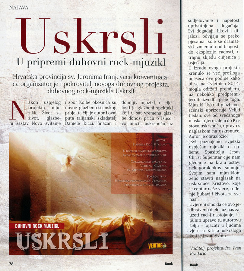 bitno.net, 3. listopada 2013: Odabrani solisti za mjuzikl "Uskrsli"