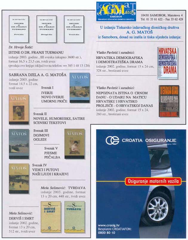Tiskara "A. G. Matoš", d. d. 10430 Samobor, Matoševa 4, tel. (01) 37-61-622; faks (01) 33-62-429 agmatos@zg.t-com.hr