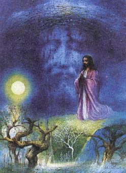 "Došao je čas!" (Iv 13, 1) U Getsemaniju je "čas" da se preda u ruke grešnika. To je "čas" i vlast Tame (Lk 22, 53). Sotona znade da je došao taj čas. Gospodin dršće, "spopade ga užas i tjeskoba, pa reče učenicima: 'Duša mi je na smrt žalosna! Ostanite ovdje i bdijte!'" (Mk 14, 33 s.) Isus je redovito sam išao na molitvu. Sada traži od učenika da mu se pridruže u molitvi i da bdiju s njime. Isus moli da ga mimoiđe "ovaj čas". Zaziva: "Abba! Oče! Tebi je sve moguće! Otkloni čašu ovu od mene! Ali ne što ja hoću nego što hoćeš ti!" (14, 36) Čas je ta čaša muke, čas u koji će biti predan u ruke grešnika. Gospodin je na Posljednjoj večeri rekao da polaže život za ljude, za sve ljude. A to znači za čovjeka u stanju koje je posljedica grijeha, u stanju koje je zapečaćeno grijehom. To znači biti odbačen od Boga, postati neprijatelj Božji, čovjek bez točke uporišta, nad bezdanom patnje i muke! Upravo taj čas Isus mora osjetiti, čašu ispiti, doživjeti odbačenost od Boga, od Božje blizine, osjetiti udaljenost Boga, svog životnog središta, postati udaljen od života, biti "proklet"! I ne samo od Boga, nego i od ljudi. Tko se udaljava od Boga, udaljava se i od brata čovjeka. I ovaj mu ne može pomoći. Isus mora u duši proći groznu sudbinu grešnika i grijeha.